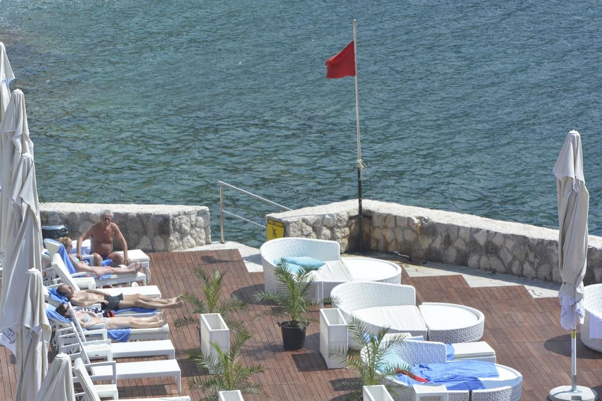 Crvena zastava na plaži hotela Rixos