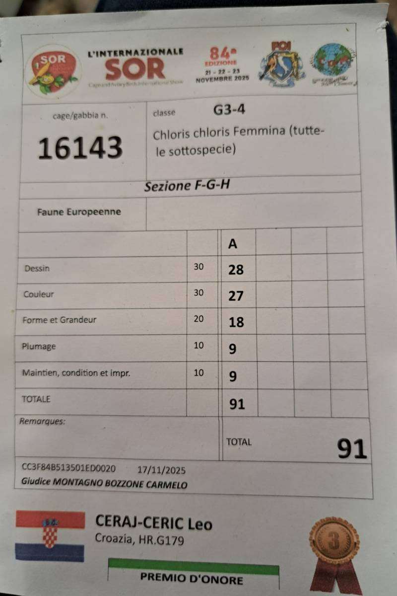 Osam članova Udruge za zaštitu i uzgoja ptica Dubrovnik sudjelovalo je na 84. međunarodnoj izložbi Esposizione Ornitologica Internazionale “S.O.R.”, a njih pet kući je donijelo 25 medalja. Izložba se održala u Modeni u Italiji od 20. do 23. studenoga.