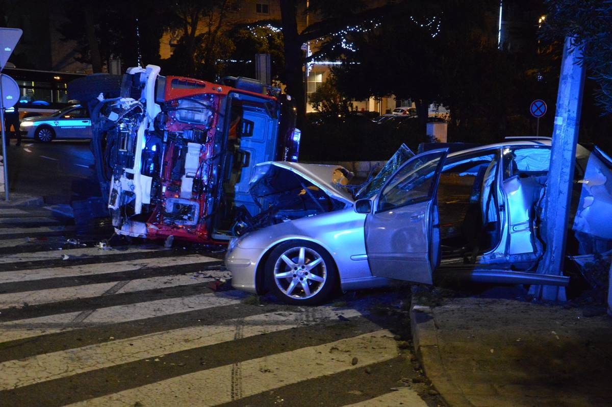 FOTO/VIDEO STRAVIČNA PROMETNA NESREĆA Vatrogasni kamion smrskao Mercedes, liječnici se bore za život jedne osobe