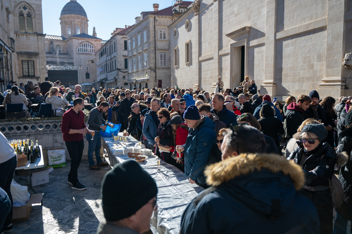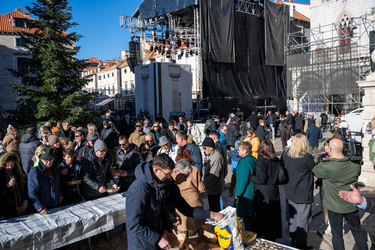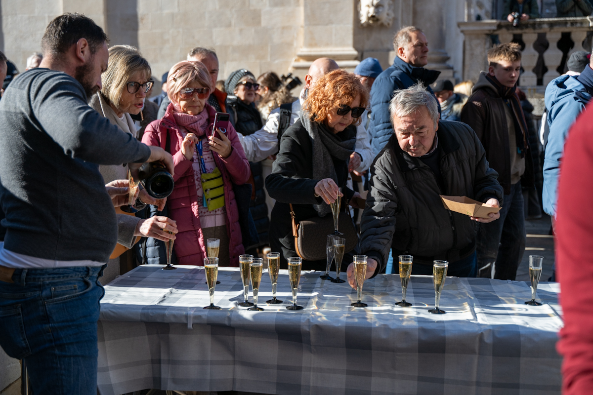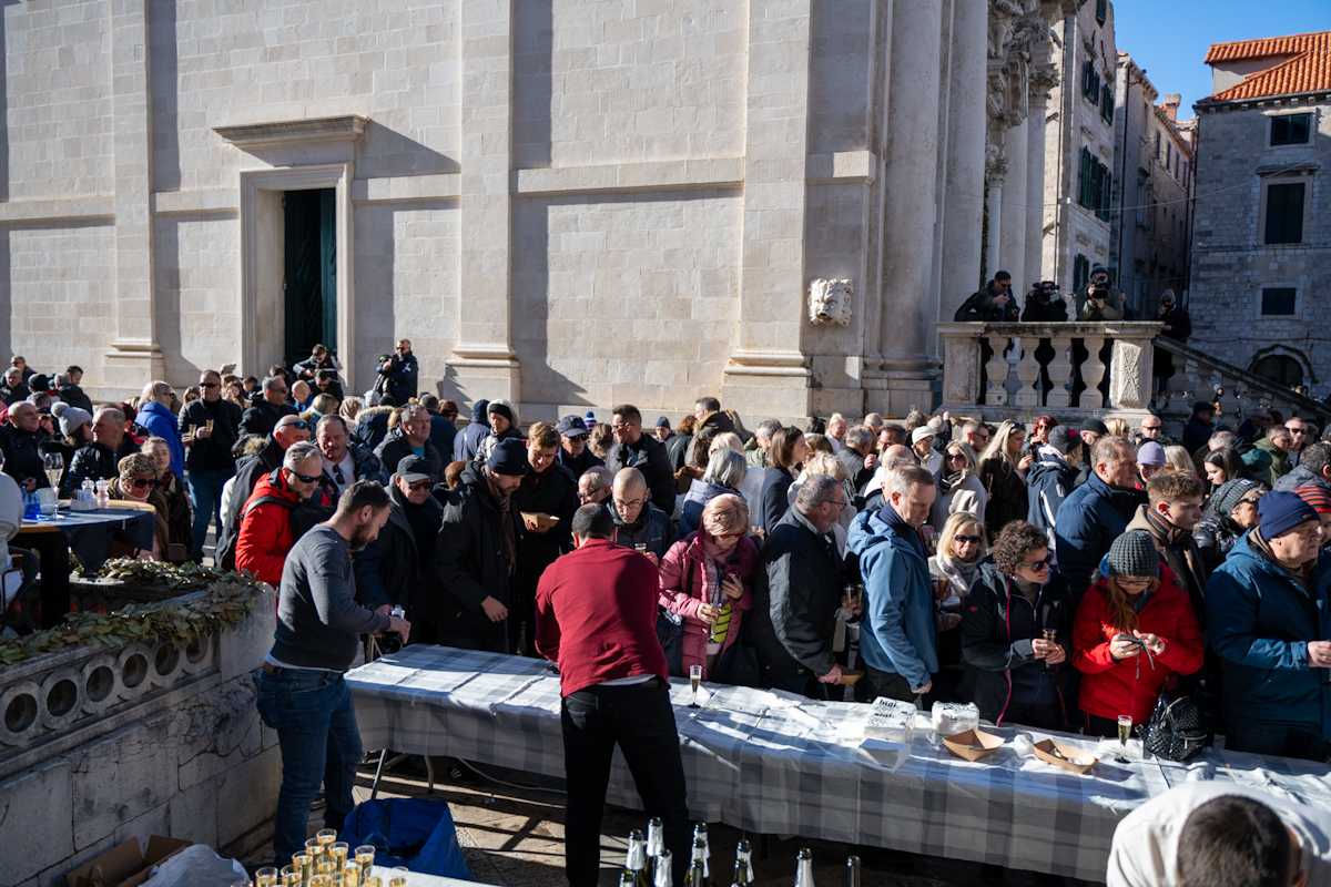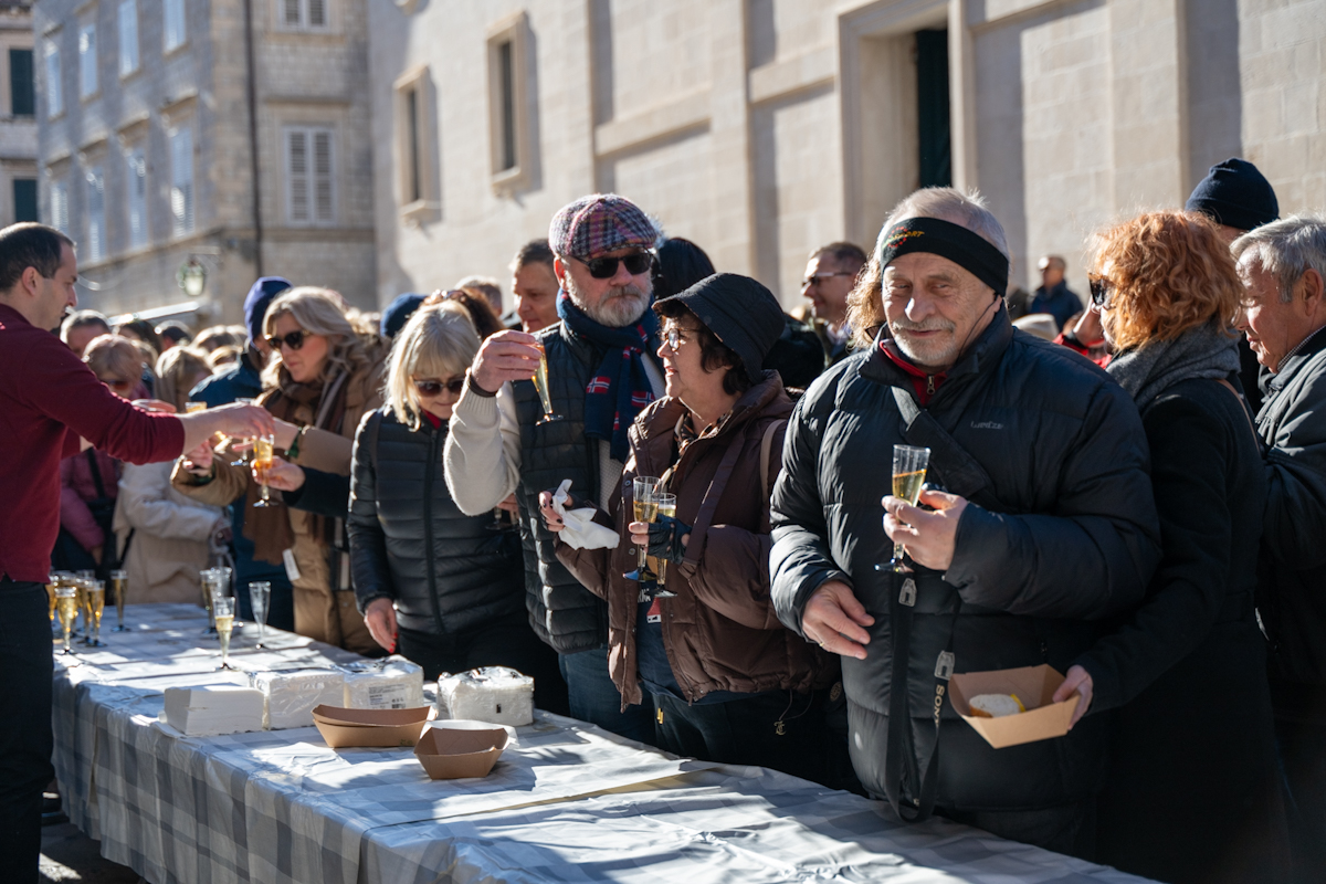Tradicionalno druženje nakon novogodišnjeg koncerta Dubrovačkog simfonijskog orkestra i ove je godine privuklo brojne Dubrovčane i turiste. Turistička zajednica grada Dubrovnika počastila je posjetitelje kamenicama i pjenušcem pokraj Male Onofrijeve fontane.