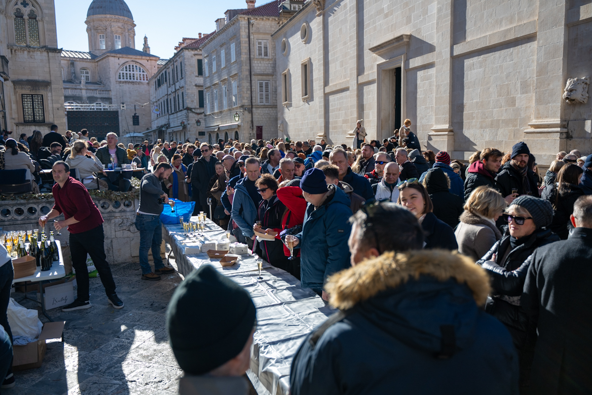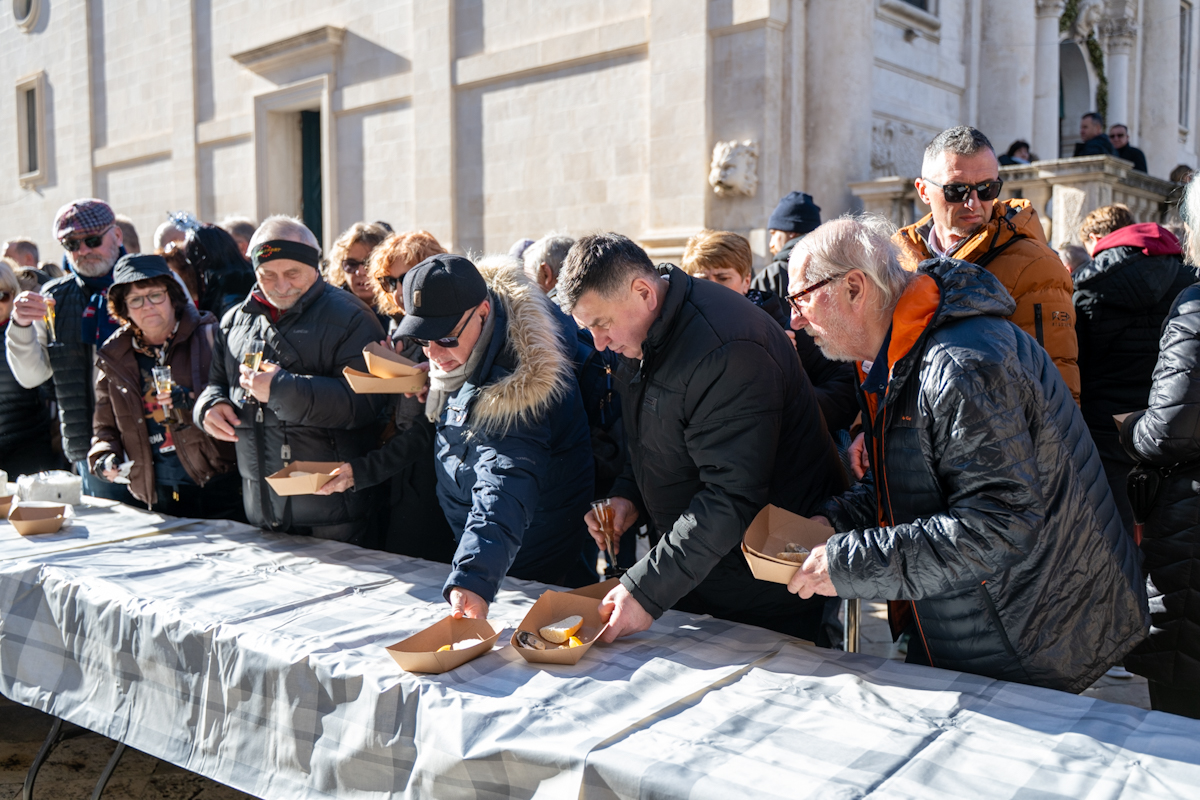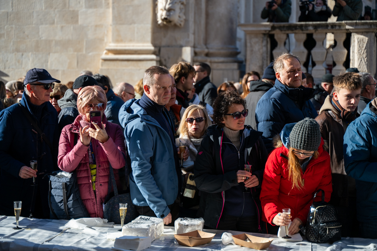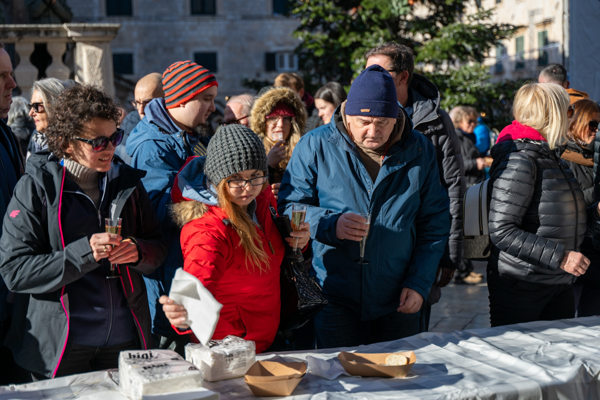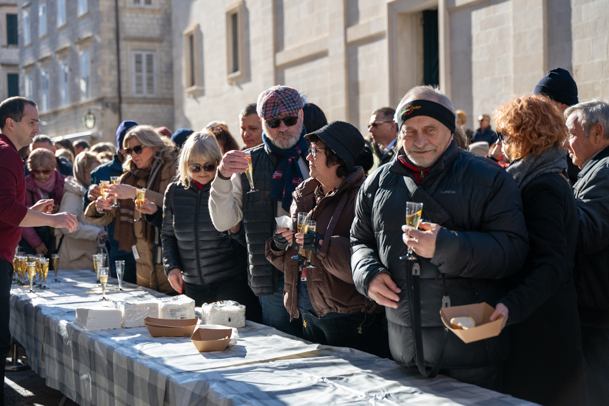 Tradicionalno druženje nakon novogodišnjeg koncerta Dubrovačkog simfonijskog orkestra i ove je godine privuklo brojne Dubrovčane i turiste. Turistička zajednica grada Dubrovnika počastila je posjetitelje kamenicama i pjenušcem pokraj Male Onofrijeve fontane.