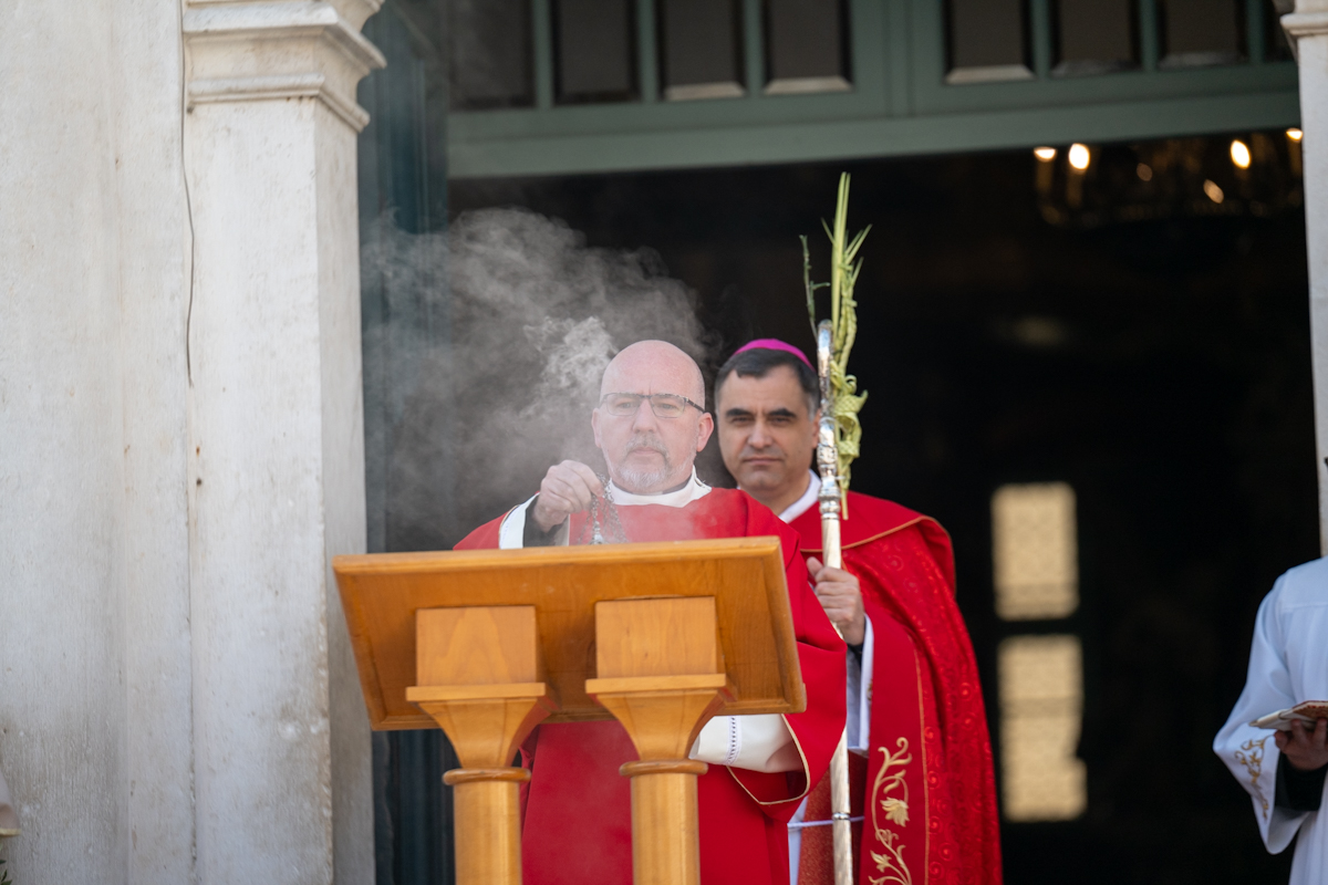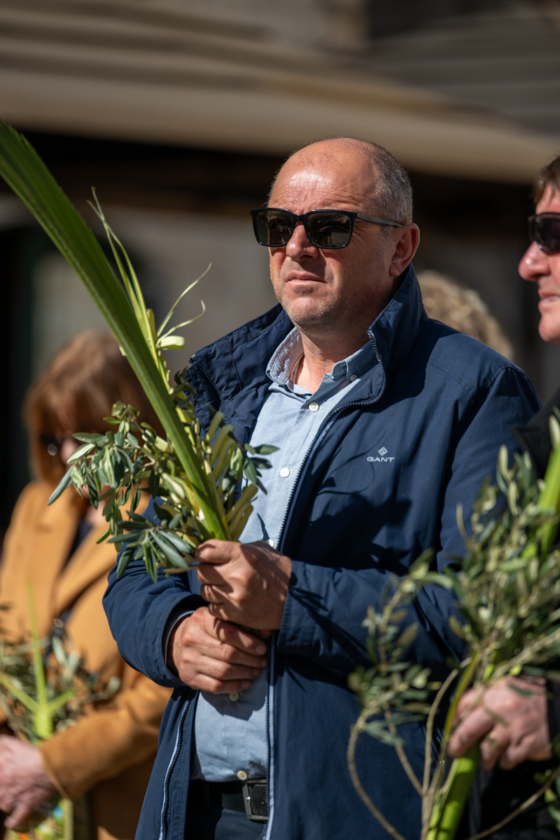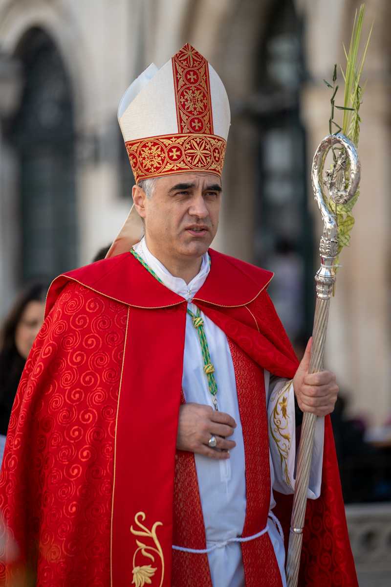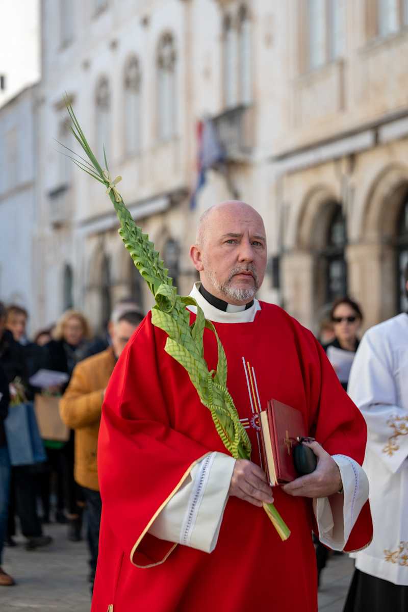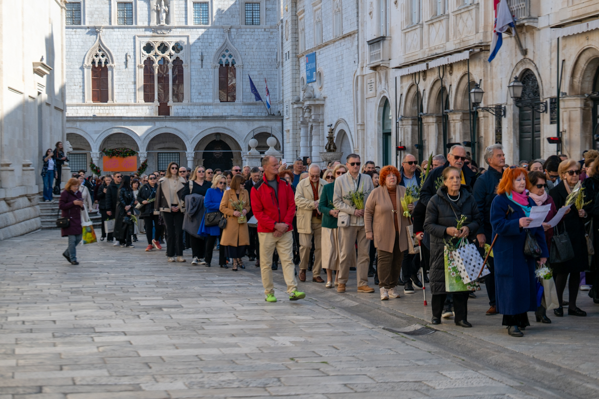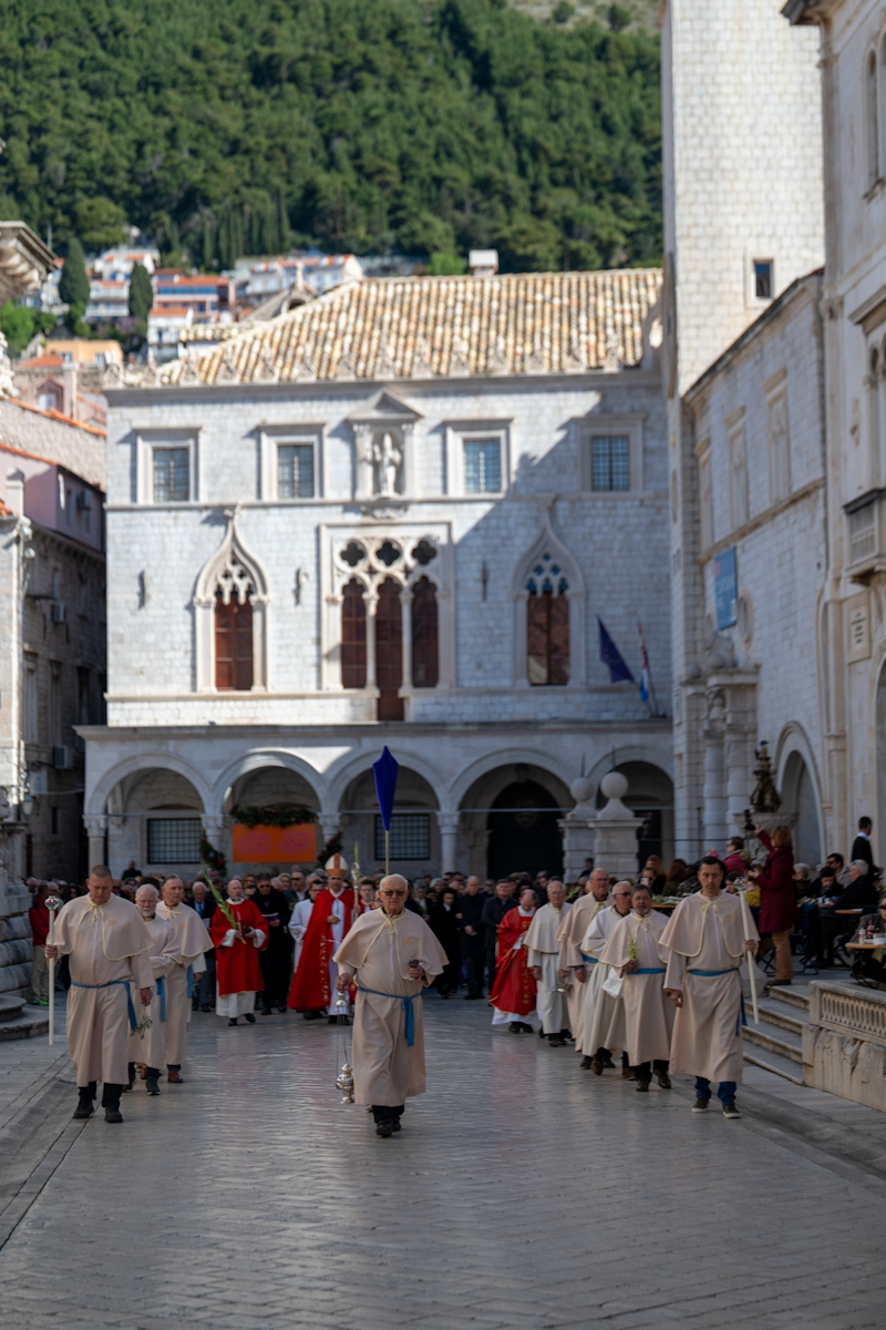 Dubrovački biskup Roko Glasnović predvodio je obred blagoslova maslinovih i palminih grančica ispred zborne crkve sv. Vlaha.