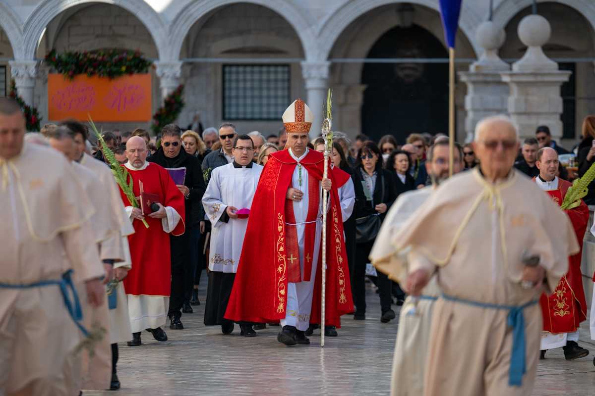 Zatim su se svećenici, asistencija i vjernici uputili u procesiji prema katedrali Gospe Velike u spomen na Isusov mesijanski ulazak u Jeruzalem.