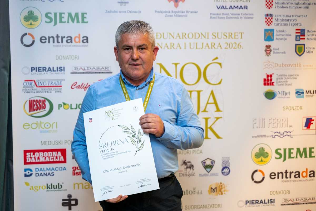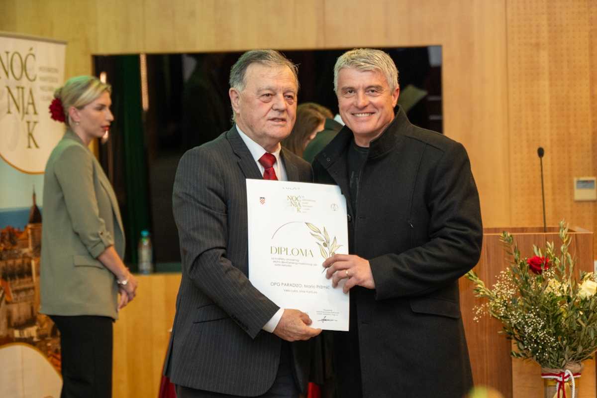 Edi Družetić iz Pule dobio Priznanje ‘Pavle Bakarić’ za životni doprinos ovom sektoru, dok je Mara Marić iz Dubrovnika osvojila Priznanje ‘Branko Škarica’ za dugogodišnji doprinos razvoju maslinarstva i uljarstva.