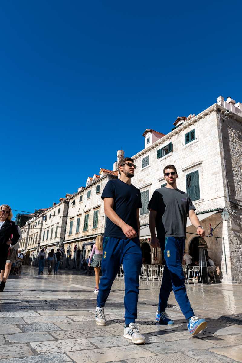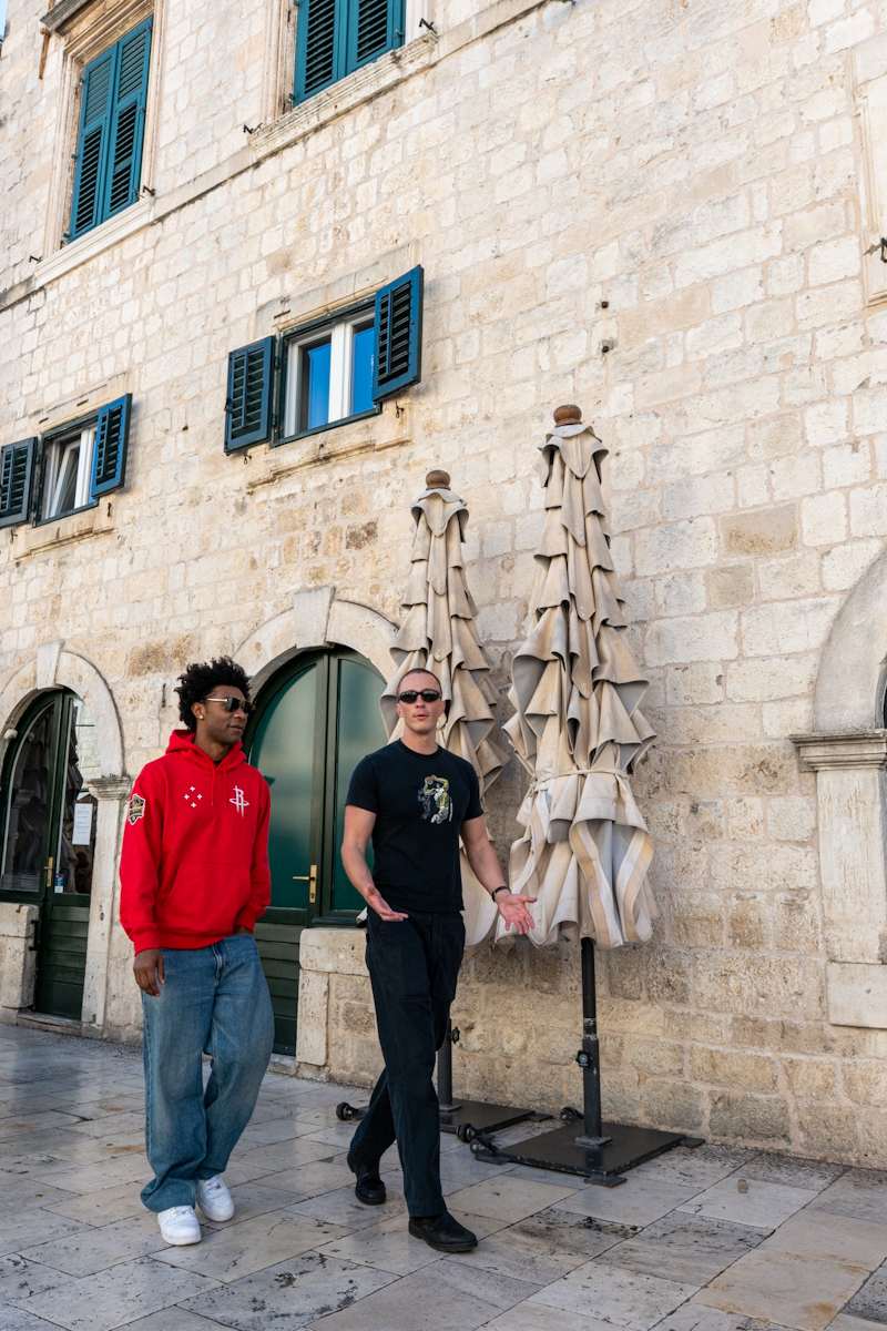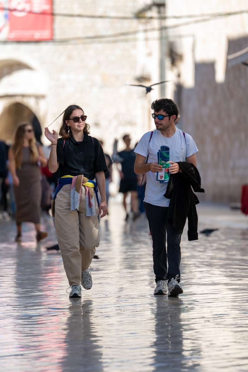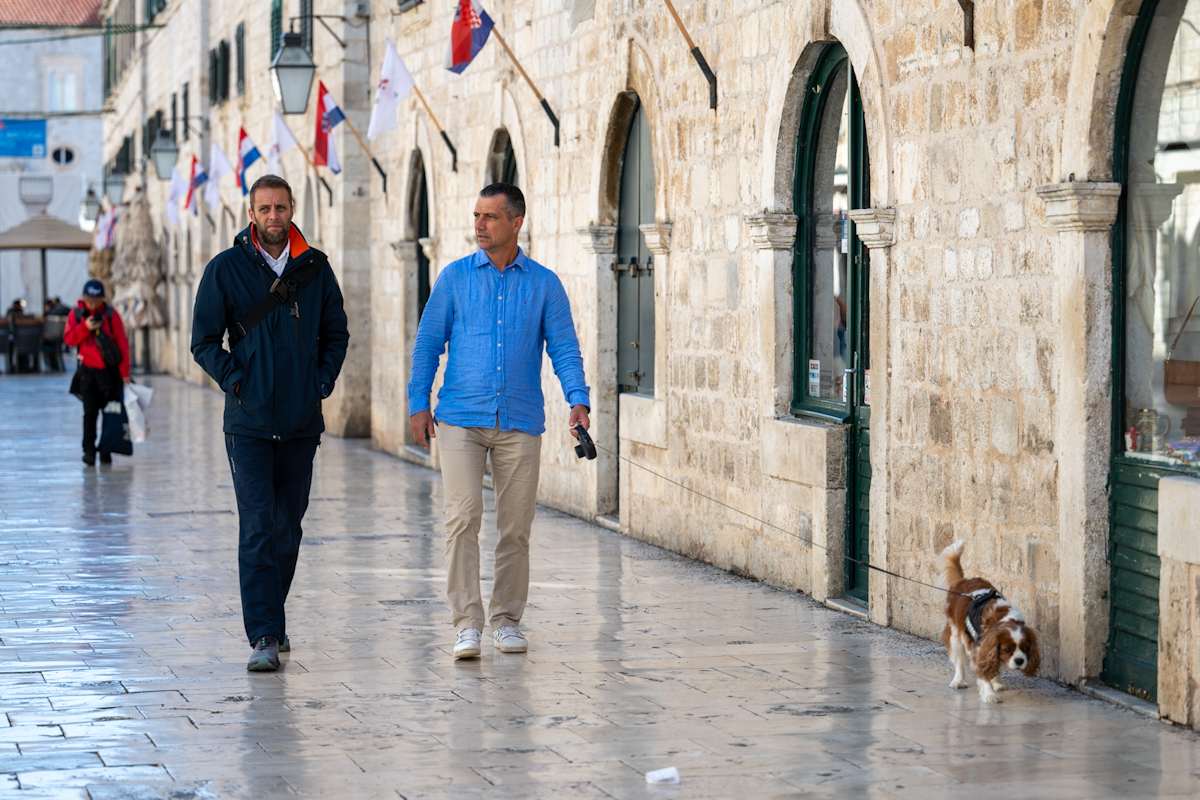 Prvi je dan studenog, ali sudeći po vremenu, izgleda kao da je proljeće ili čak kasno ljeto. Sunčan i topao dan na ulice grada privukao je veliki broj šetača koji uživaju u ljepotama grada, razgovoru s prijateljima i u ispijanju kava. Naišli smo i na glumce iz serije Outer Banks koja se trenutno snima u Dubrovniku, a to su Jonathan Daviss i Drew Starkey.