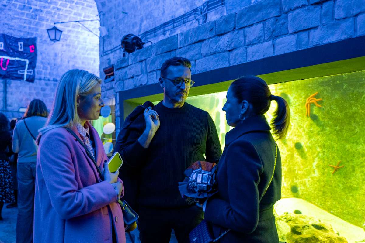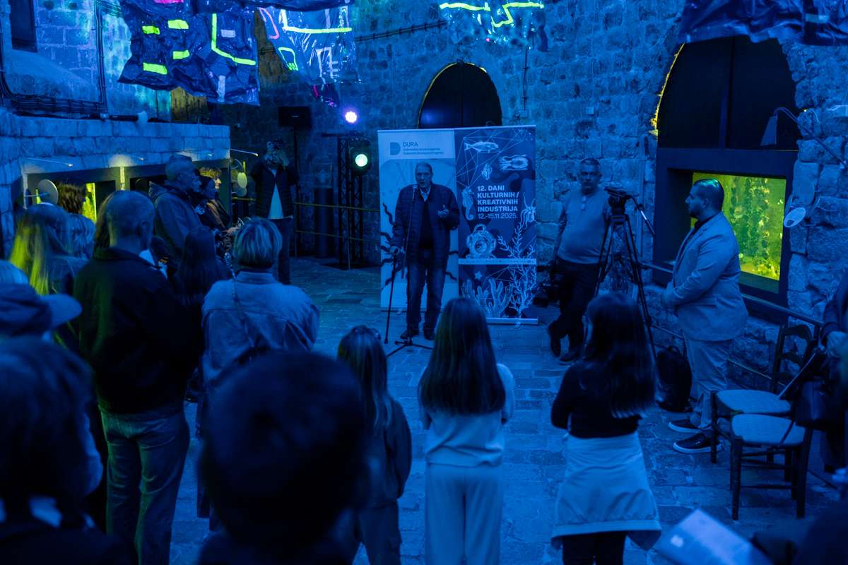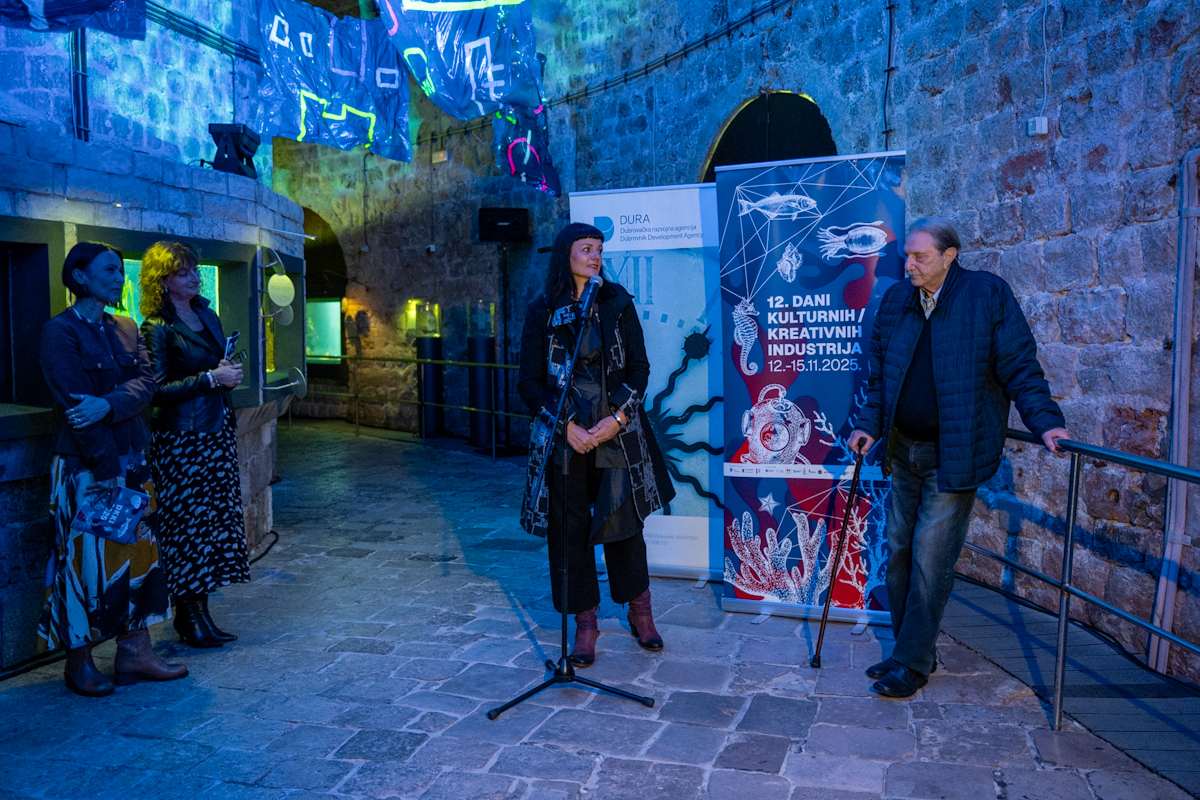 Dani kreativnih i kulturnih industrija (DKKI) svečano su otvoreni u Aquariumu Dubrovnik izložbom ‘Blue Scream’ autorice Iris Lobaš Kukavičić. Riječ je o ambijentalnoj instalaciji koja kroz svjetlo, zvuk i vakumirane radove donosi sasvim nov pogled na umjetničku formu.