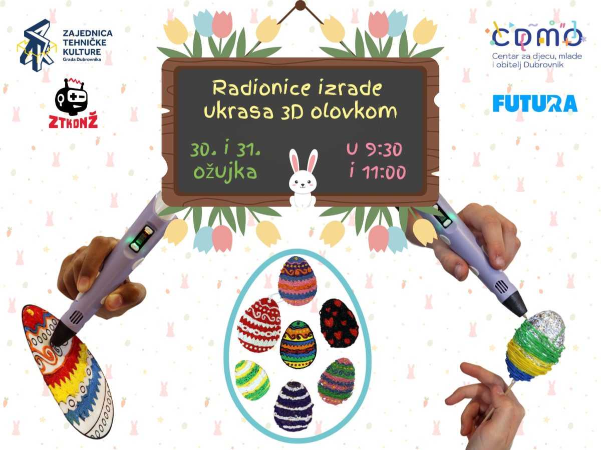 Zajednica tehničke kulture Grada Dubrovnika i Zajednica tehničke kulture Grada Dubrovnika i Zajednica tehničke kulture Dubrovačko-neretvanske županije u suradnji s Informatičkim klubom Futura pripremili su četiri uskršnje radionice izrade ukrasa 3D olovkama.