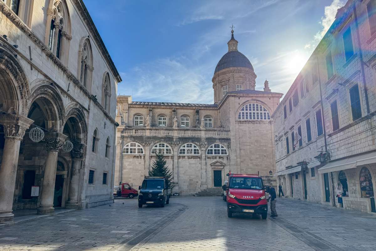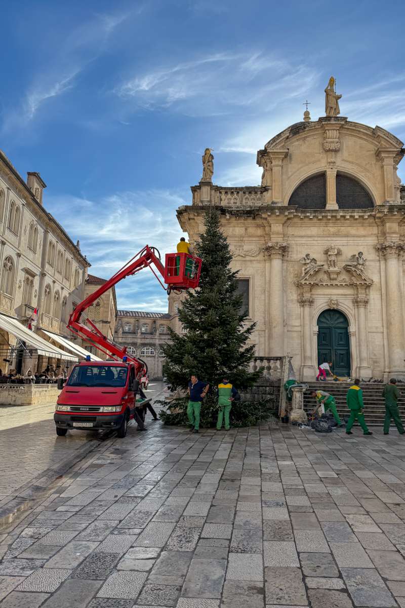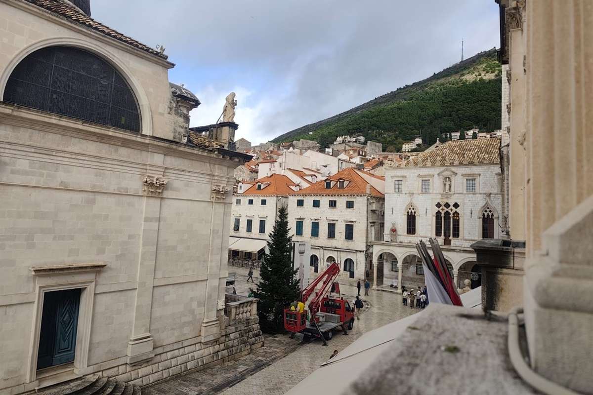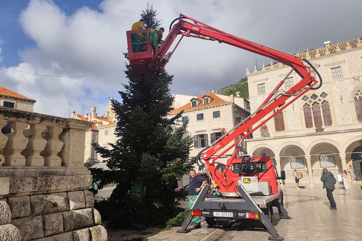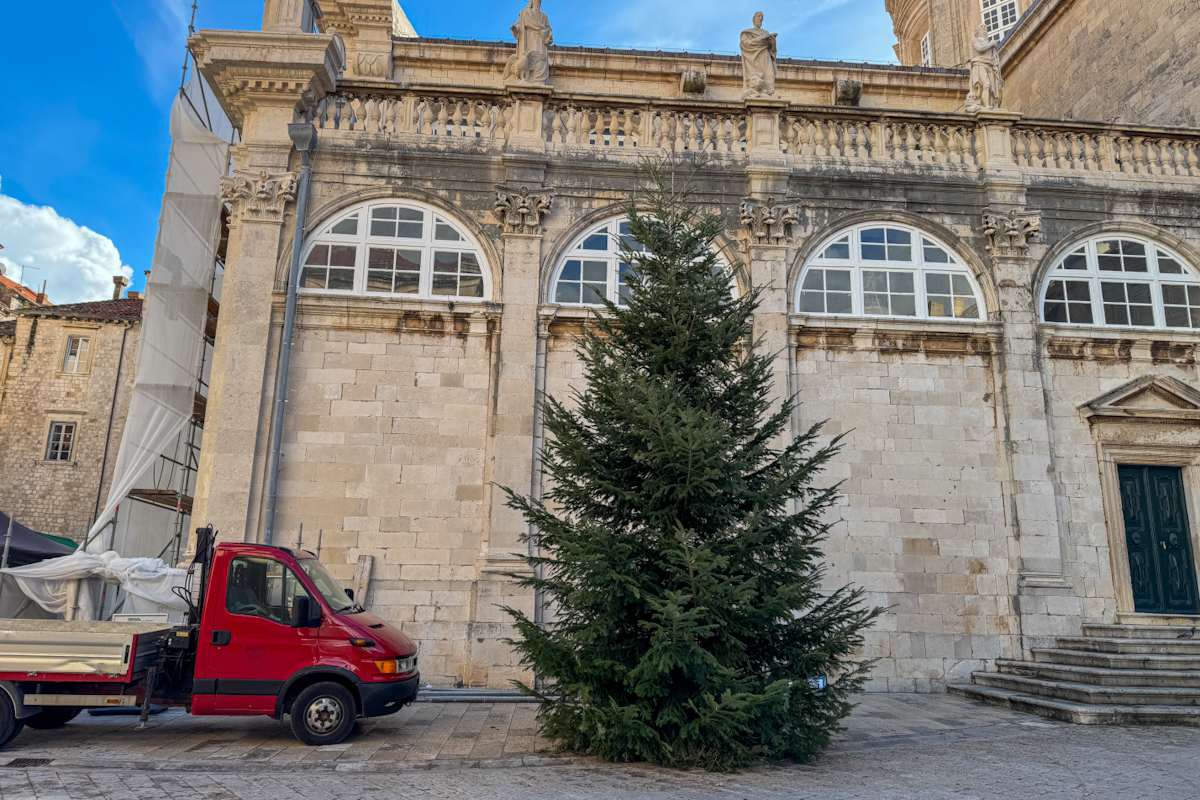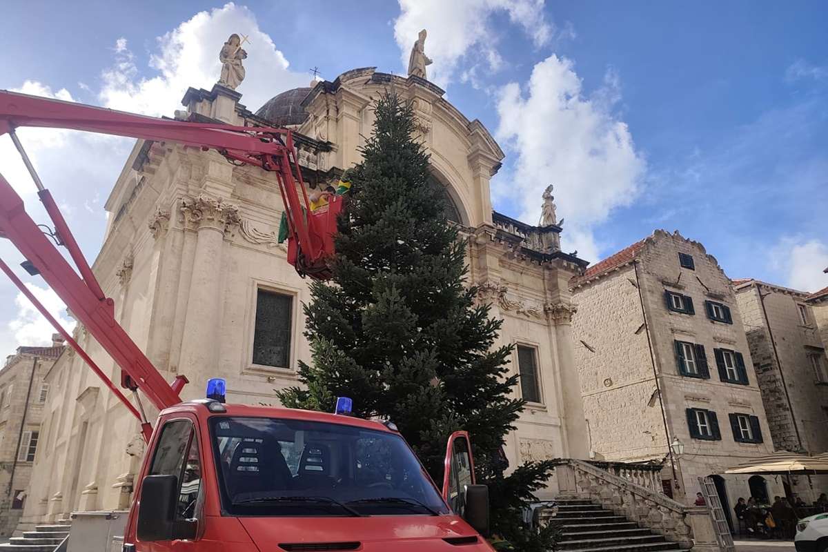 Grad je krenuo poprimati pravi božićni ugođaj. Nakon što su na Stradunu nedavno postavljeni božićni ukrasi, danas je pokraj crkve svetoga Vlaha stigao i bor. Visok deset metara i težak skoro tonu, bor čeka kićenje i paljenje lampica.
