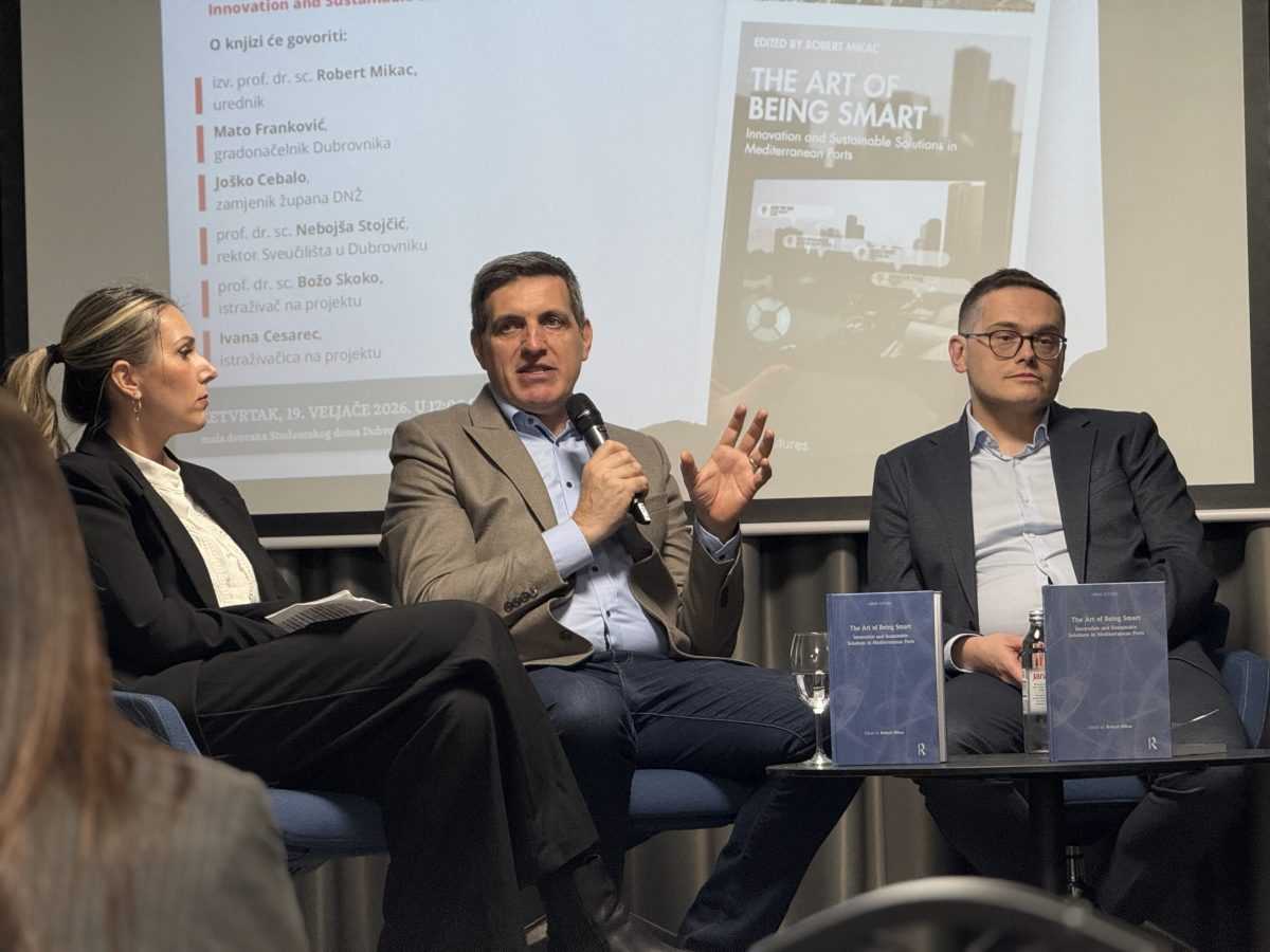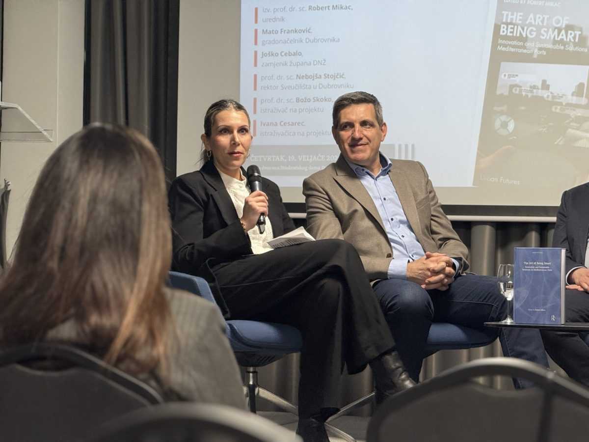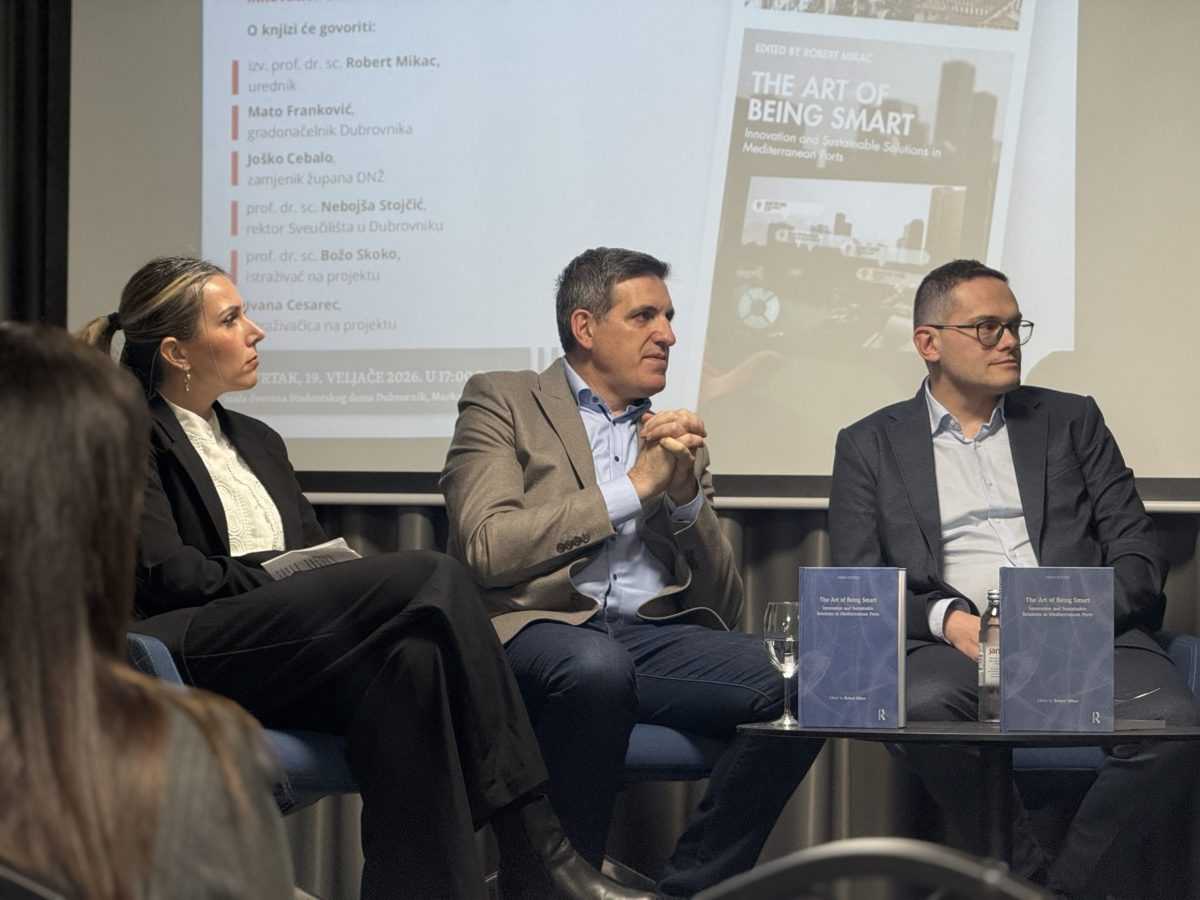Okrugli stol i promocija znanstvene knjige The Art of Being Smart: Innovation and Sustainable Solutions in Mediterranean Ports održana je u četvrtak 19. veljače u Studentskom domu Sveučilišta u Dubrovniku. Knjiga je posvećena inovativnim i održivim pristupima razvoju mediteranskih luka i pametnih gradova.