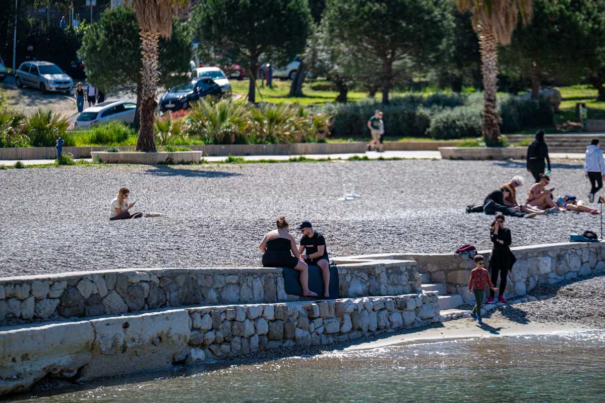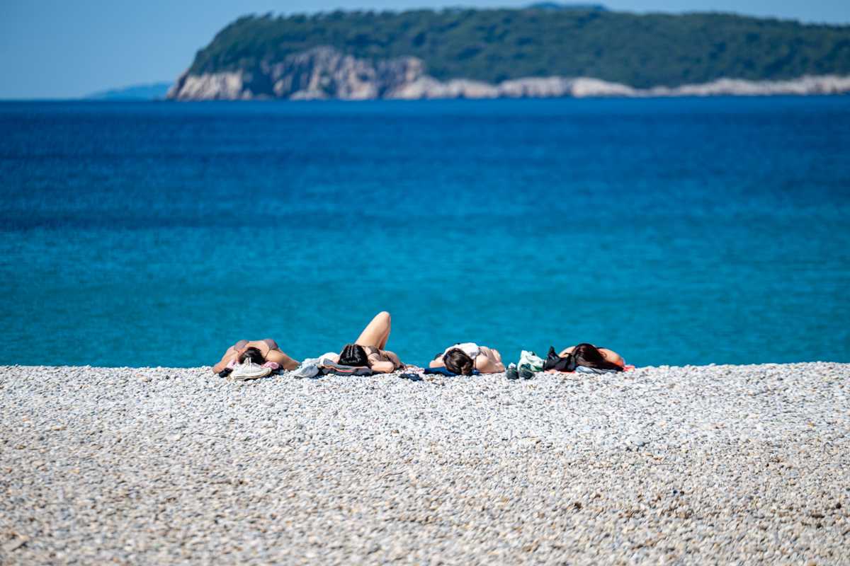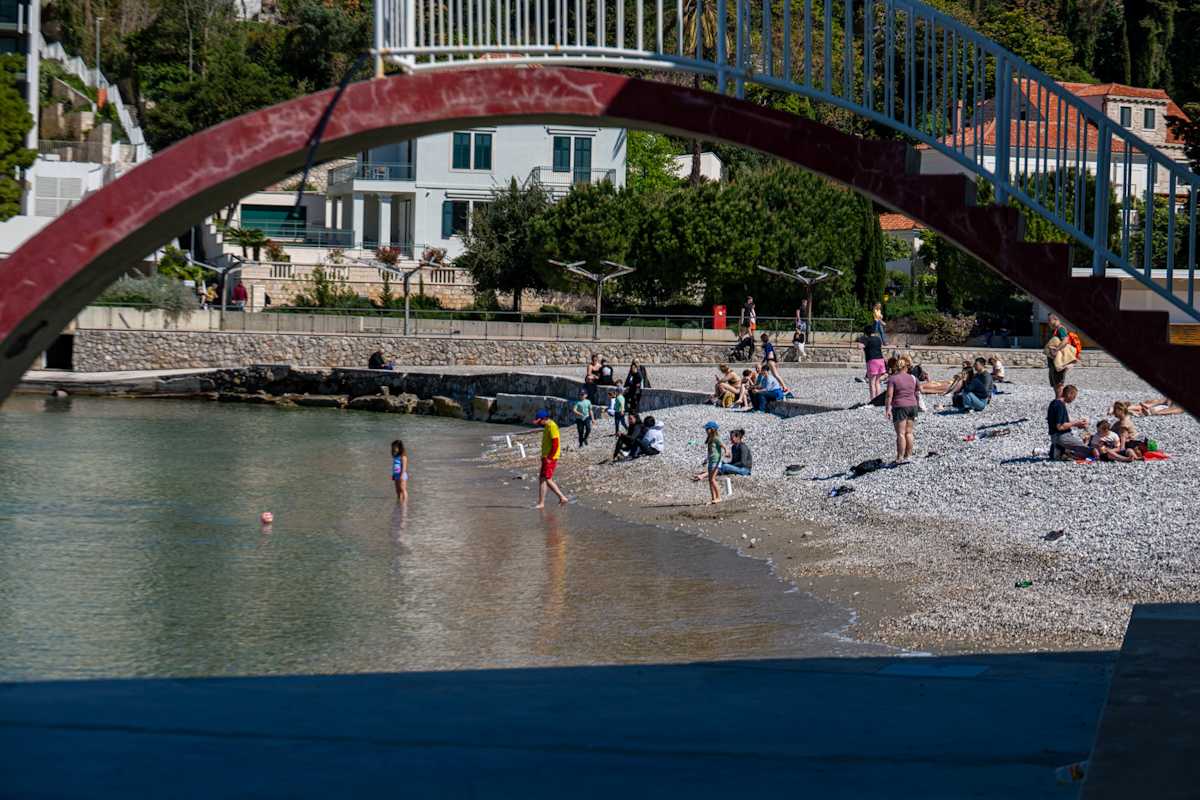 Uvala je danas bila krcata ljudima, domaćima ali i turistima. Jedni su šetali, drugi uživali sjedeći uz more i točajući noge, a hrabriji su se bome i utočali.