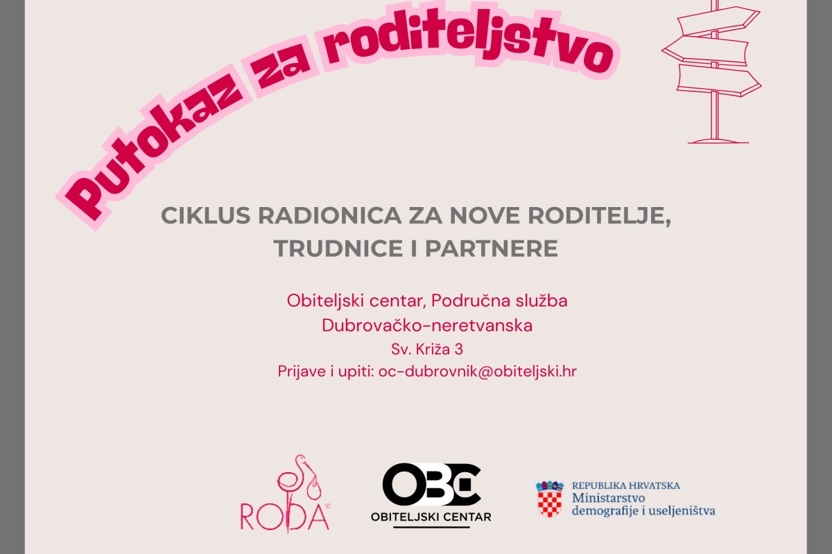 Područna služba Dubrovačko-neretvanska, u partnerstvu s Udrugom Roda, organizira ciklus radionica za trudnice, partnere i nove roditelje pod nazivom „Putokaz za roditeljstvo“.