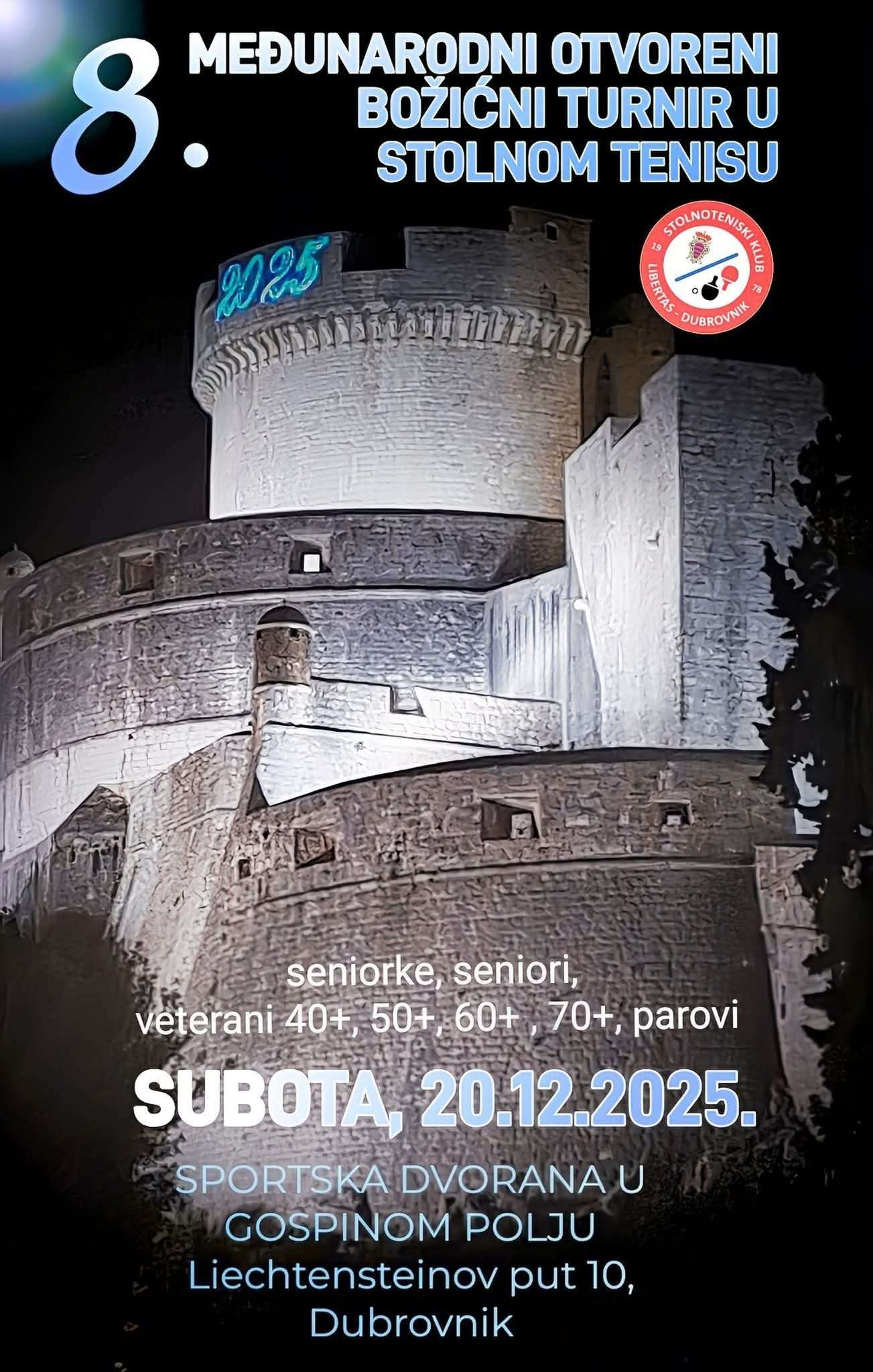 Ove subote se, u Sportskoj dvorani u Gospinom polju, održava osmi međunarodni otvoreni Božićni turnir u stolnom tenisu – Dubrovnik 2025.