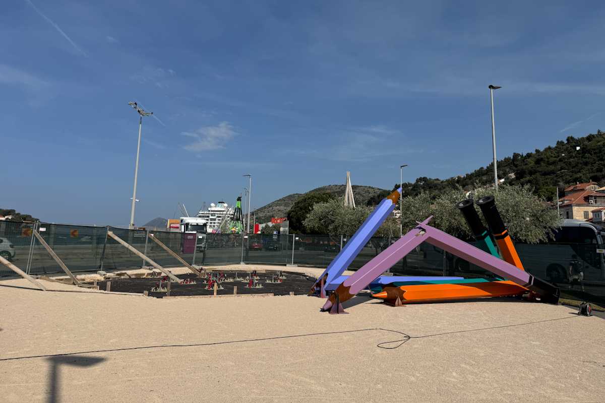 Počelo je postavljanje dijelova spomenika poginuloj djeci na ulazu u grušku luku. Stigle su, naime, polomljene šarene olovke koje simboliziraju prekinuto djetinjstvo.