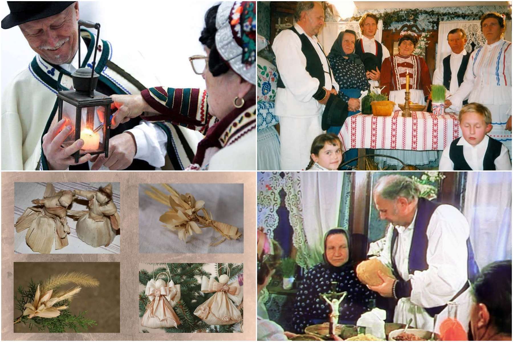 - Unošenje slame – nagovor, molitva; vezanje užetom nožica stola i postavljanje božićnog stola