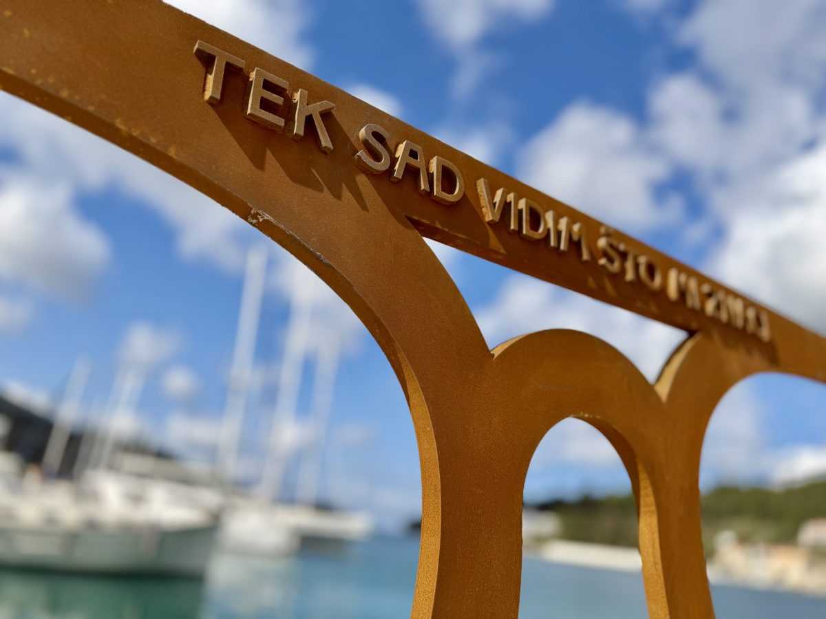 Autor instalacije je dizajner i umjetnik Saša Prižmić, a projekt je zamišljen kao spoj spomen-obilježja i turističke atrakcije. Instalacija dimenzija 3 × 2 metra, gotovo kao rukometni gol, izrađena je od cortena, čelika koji s godinama razvija prirodnu patinu i savršeno se uklapa u mediteranski ambijent.