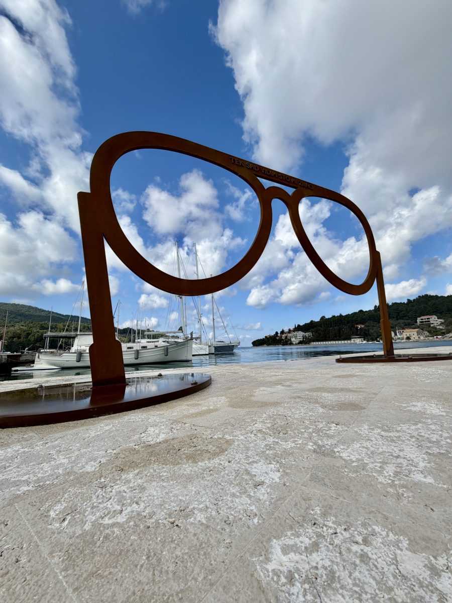Uz samo more u velolučkoj uvali, s pogledom na otočić Ošjak, sad stoji umjetnička instalacija koja poziva posjetitelje da Vela Luku vide Oliverovim očima. Riječ je o stiliziranim naočalama, kakve je legendarni glazbenik nosio na početku karijere, a koje su postale nova točka okupljanja i fotografiranja u ovom gradu.